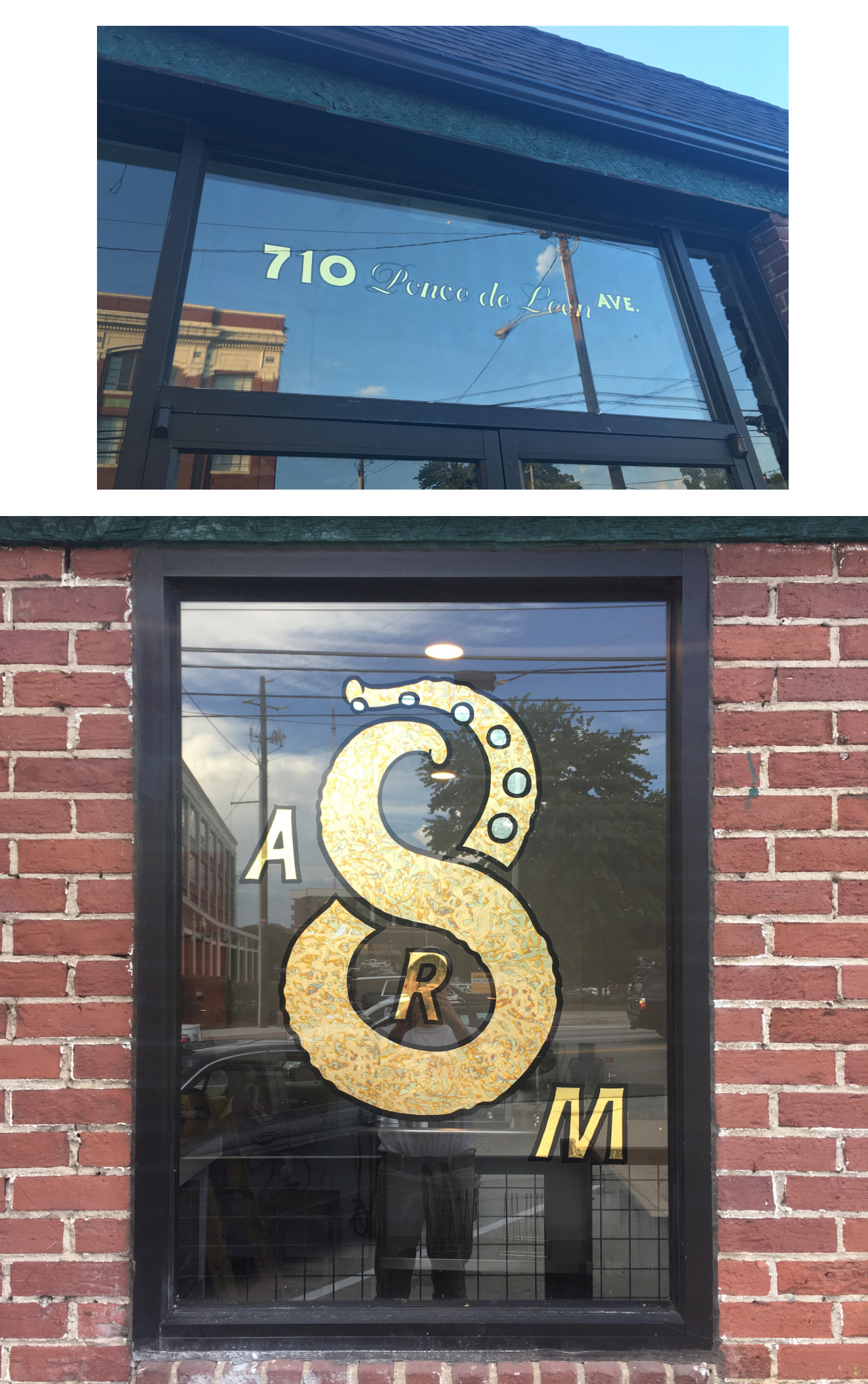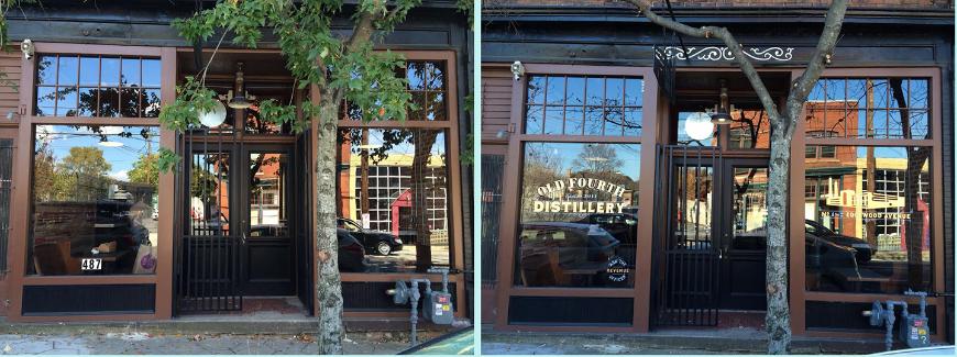 GILDING FEATURE, 19DEC2014 - Before and After! Scroll down to see the difference Gilding can make on the facade of the Old Fourth Distillery, in the Old Fourth Ward in Atlanta.
