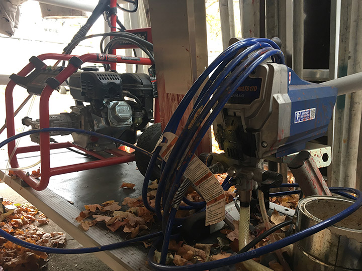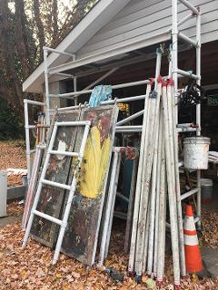 All of our walls are cleaned and prepared before we paint. Also visible is the various gear used to reach the heights where the work is required.